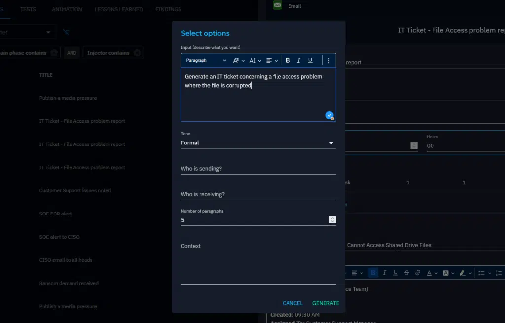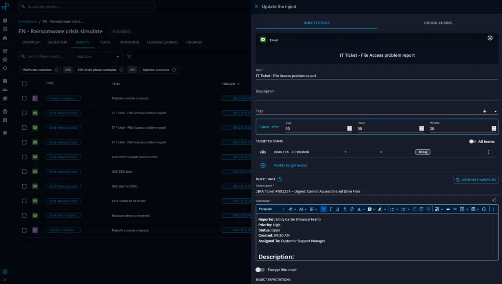 - You can also generate and include new injects on the fly so you can adapt your scenario to any context.