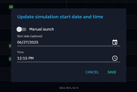 OpenBAS allows you to manually launch the scenario, or schedule it to automatically begin at a specific date/time.
