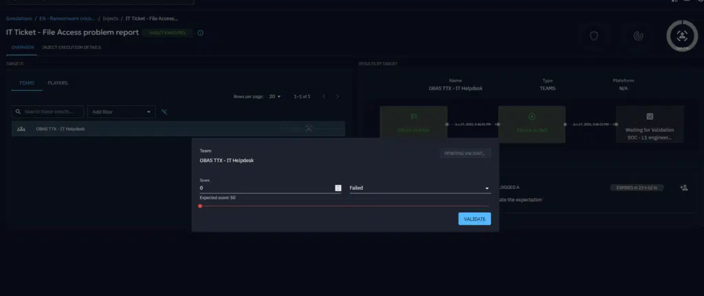 Once the content of your inject is ready, assign it to the relevant functional teams and schedule it to complete the inject.