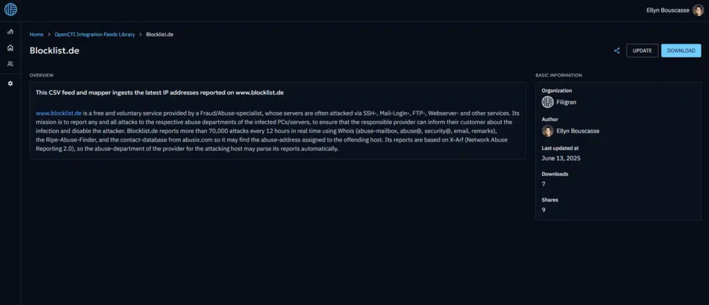 At Filigran, we believe in making the community thrive : we curated some excellent sources, that all of you will be able to use. All these sources are available in our XTM Hub, for you to choose without messing your platform with unused integrations. The CSV Feeds are available on the XTM Hub in our new Integration Feeds library! Discover, browse and download CSV Feeds that can help your whole CTI and then simply import it in OpenCTI.