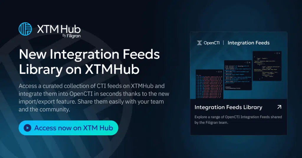 XTM Hub is just getting started. Our ambition is to turn it into a dynamic and evolving platform that grows alongside the needs of the CTI community. In the coming weeks and months, we’ll be expanding the Integration Feeds library with fresh data feeds for our integration feeds library such as RSS feeds, JSON feeds and connectors and richer integrations that connect seamlessly with the rest of the XTM suite.