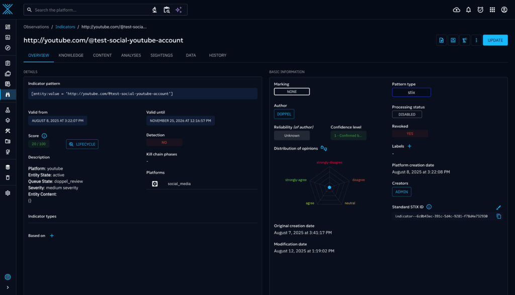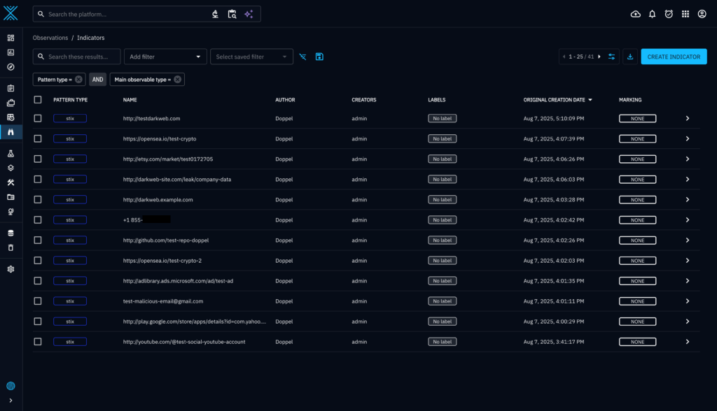 - Seamless mapping of Doppel alerts to OpenCTI indicators
