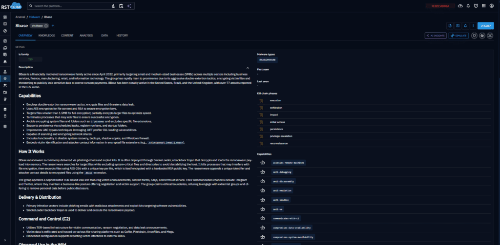 RST Threat Library addresses the persistent challenge of threat naming chaos that fragments knowledge across organizations. The same malware, campaign, or threat actor might be referenced differently across vendors, government agencies, and research organizations, making correlation difficult and comprehensive tracking nearly impossible.