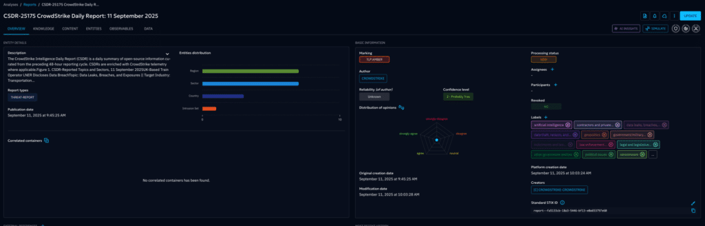 OpenCTI consolidates CrowdStrike’s world class threat intelligence with all your threat data sources—open source, premium feeds, government advisories, and internal intelligence. This creates a complete 360-degree view of threats targeting your sector, geography, and technology stack. No more jumping between platforms or manually correlating data; everything you need is in one place.