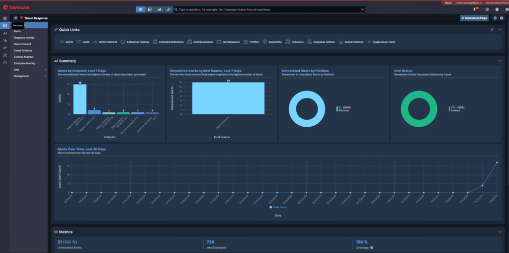 Tanium brings the leading endpoint security and IT operations solution. Its unique architecture provides real-time visibility and control across all endpoints, making it an essential solution for security operations teams. The Tanium Threat Response module is particularly effective for threat hunting, detection, and incident response across the enterprise.