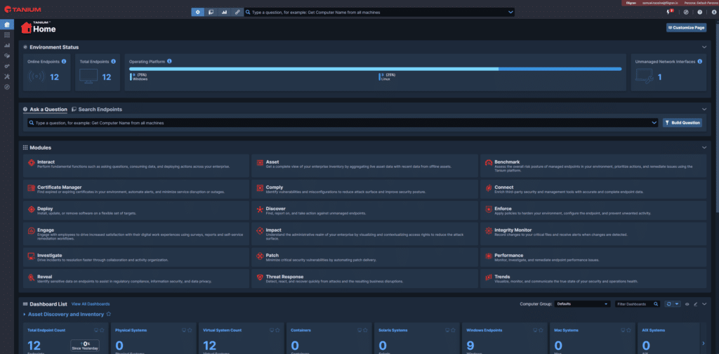 Tanium’s solutions are particularly valued for their speed, scalability, and ease of integration. By combining endpoint visibility, threat detection, and incident response into a unified AEM platform, Tanium helps organizations stay ahead of threats while ensuring operational efficiency across their IT infrastructure.
