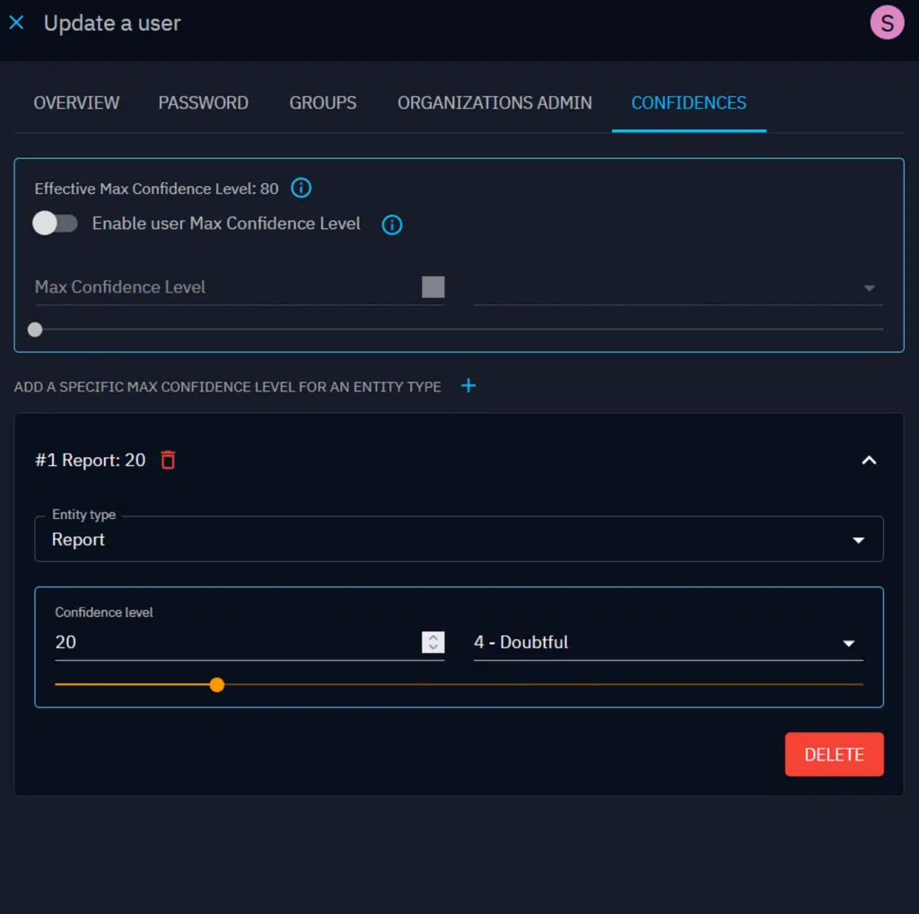 - a maximum confidence level between 0 and 100 (optional for users, mandatory for groups);