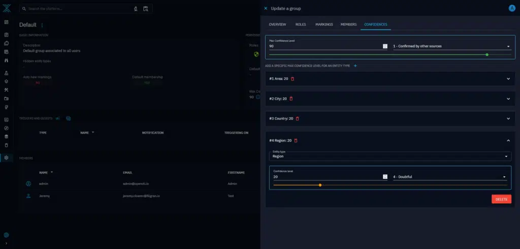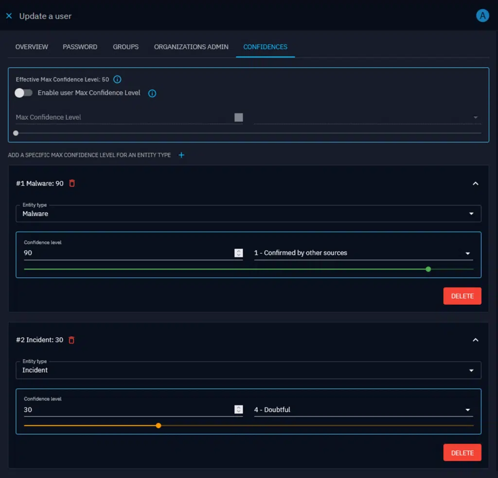 Now, with the version 6.2, OpenCTI goes even further by offering the possibility to define a maximum confidence level for a user by entity type.