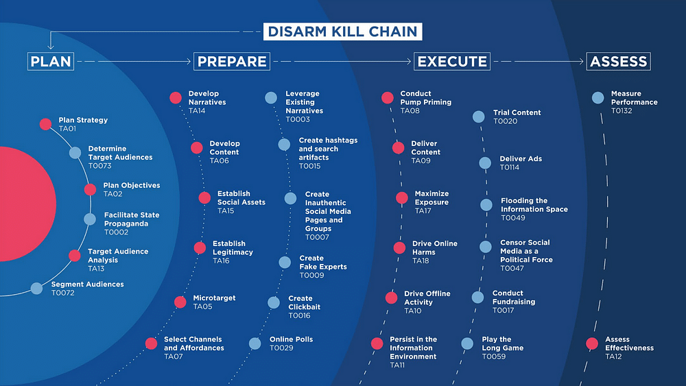 In the context our work especially with Debunk.eu and the DISARM Foundation, we have also developed a connector to be able to add the DISARM TTPs Framework. The foundation is working closely with the MITRE Corporation and OASIS Open to continuously enhance the DISAM Kill Chain and the potential intersections with the cyber field.