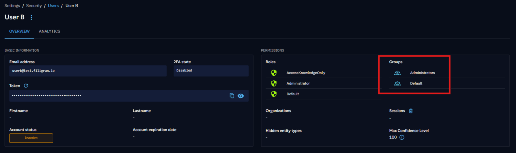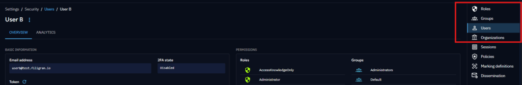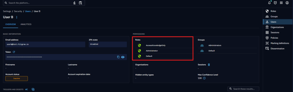 - Each user of OpenCTI must have a user profile and be assigned to a group and a role
