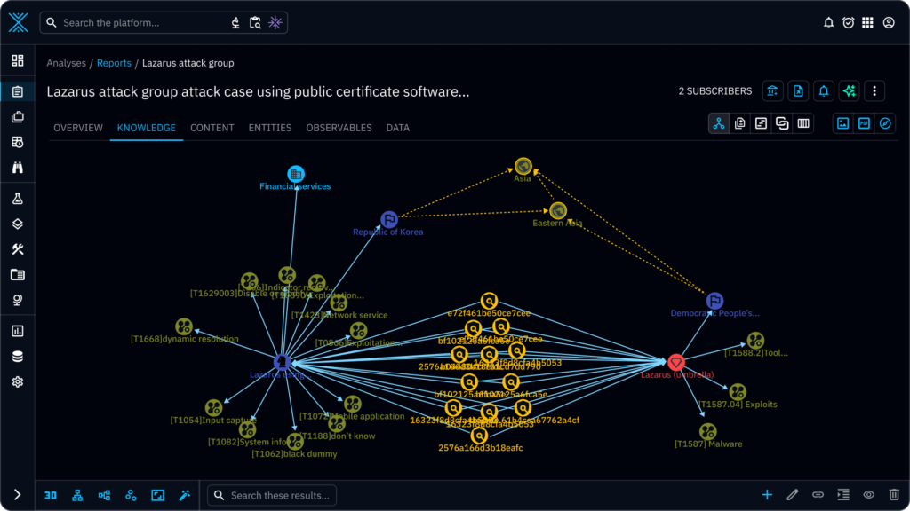 Instead of leaving those in disconnected PDFs and slide decks, OpenCTI lets you store them as structured reports tied to: