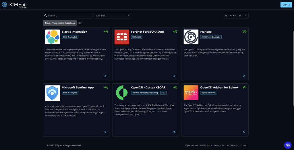 With XTM Hub, the old Notion‑based OpenCTI ecosystem list has evolved into a live, curated library of integrations.