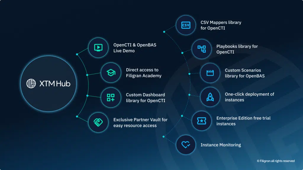 XTM Hub is the heart of your Filigran journey. By centralizing all the resources and services you need, XTM Hub simplifies how you explore, learn and grow with our products. It’s designed to evolve alongside your needs, offering a unified, empowering experience that helps you succeed.