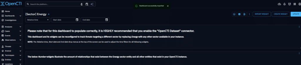 Deploying a dashboard to OpenCTI is now seamless thanks to XTM Hub. Simply choose your desired dashboard on XTM Hub and click “Deploy in OpenCTI“. If you have multiple platforms registered, select the target platform, or confirm the deployment to your single registered OpenCTI. You’ll be redirected to OpenCTI, where authentication may be required. OpenCTI autonomously retrieves the dashboard from XTM Hub and integrates it into your platform.