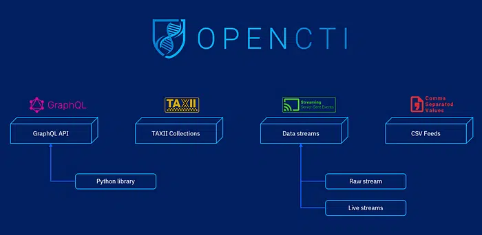 One of the most important expectations of our community is the ability to disseminate knowledge and make OpenCTI data available to third party systems, platforms or even other OpenCTI instances. In order to fulfill this role, we have developed many channels and features to extract information while keeping in mind that key factors of success are:
