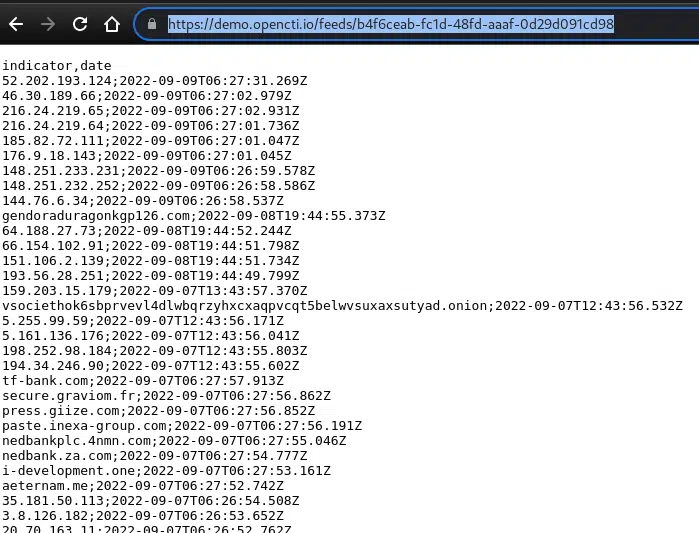 I would like to easily ingest all IP addresses and domain names collected by OCTI in my Fortinet firewall blocklist. This firewall is not able to parse STIX, TAXII or any complex format but only CSV.