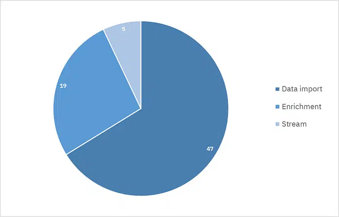 Unsurprisingly, import and enrichment connectors are present in large numbers in the OpenCTI ecosystem.
