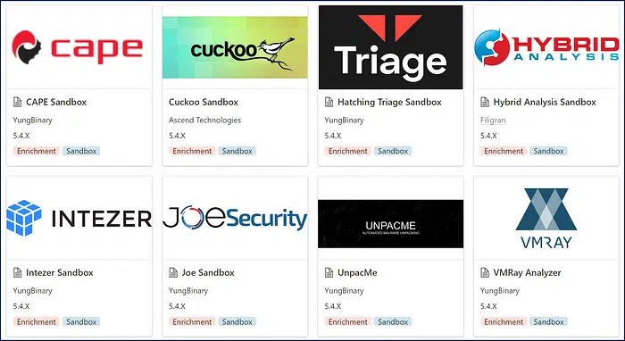 Using the available sandboxes gives CTI / SOC / DFIR teams the ability to just upload an artifact in the platform and trigger automatically or manually all of them to extract data.