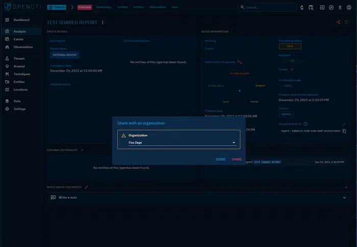 To give you a better idea of how it works, let’s configure OpenCTI to support the use case of this blog post: a central CTI team that would like to share different pieces of information to the Police and Fire departements.