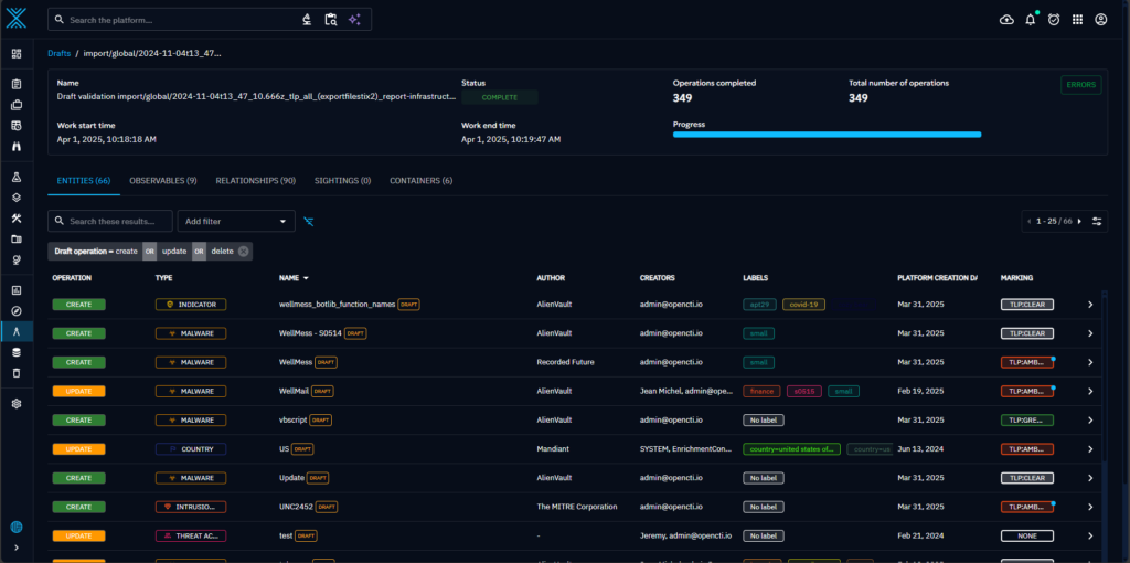 Preview data ingestion with draft workspaces in OpenCTI 6.6