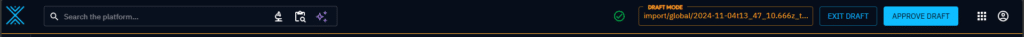 Entering a draft is a session-wide action: all the pages that you will access in the platform will now be in the context of this draft. You will still be able to see the up to date and latest main knowledge base data, but you will see your draft data in addition.