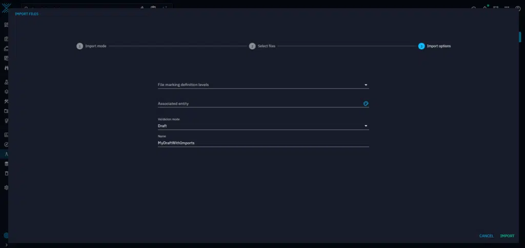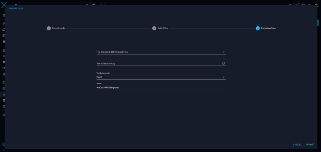 The second, and probably most useful way, it to choose the draft validation mode when importing a file in the ‘step-by-step’ import mode.