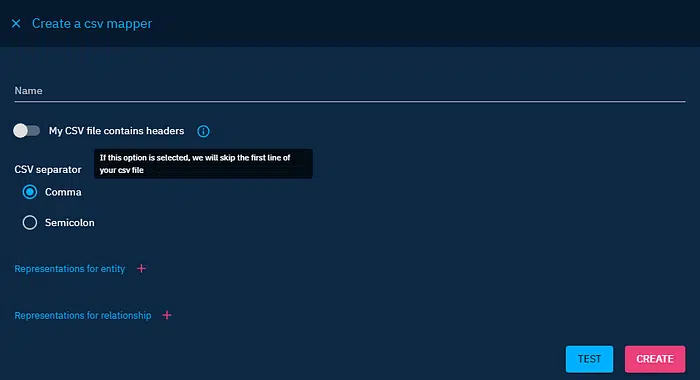 All CSV Mappers go through a quick validation that checks if all the representations have all their mandatory fields set. Only valid mappers can be run by the users on their CSV files.
