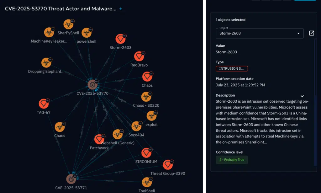 Image showing analyst investigation of threat actor overlap when exploiting CVE-2025-53770 and CVE-2025-53771