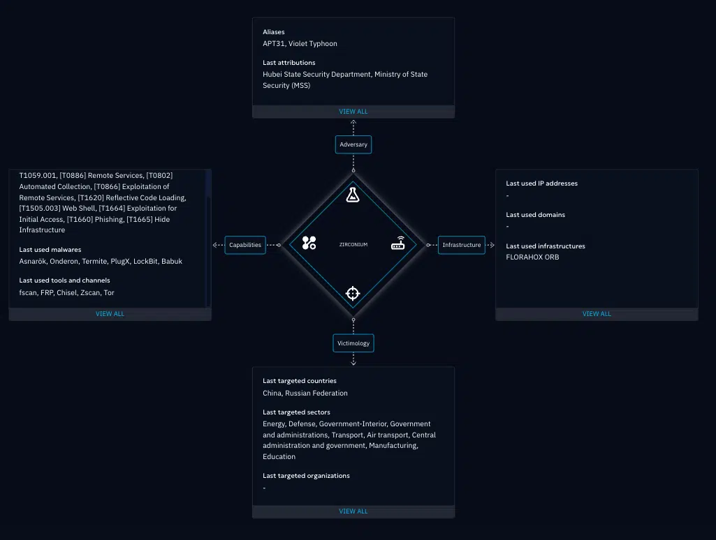 Diamond Model of ZIRCONIUM aka Violet Typhoon – Threat Actor linked to CVE-2025-53770