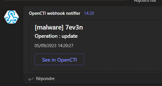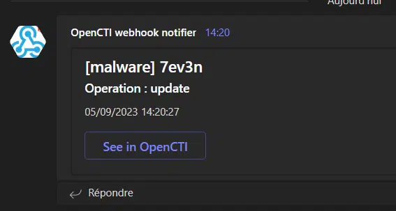 In this section we will guide you through a simple use case : I want to be notified on Microsoft Teams about updates regarding Malwares in OpenCTI.