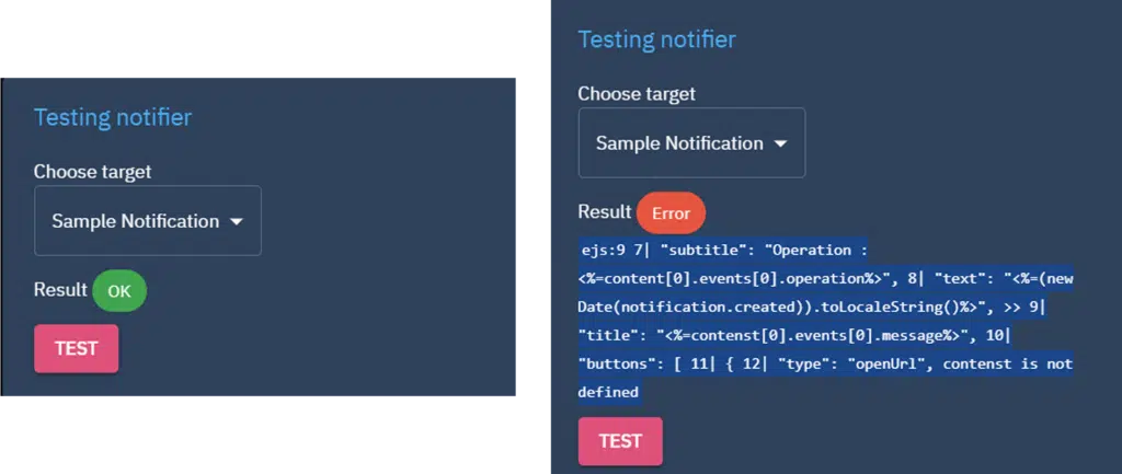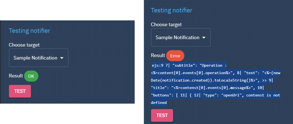 To ease the configuration of your custom notifiers, we add a “Test” button inside the form.